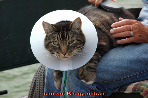 und Gel, sondern auch einen Plastikkragen für die nächsten Tage,