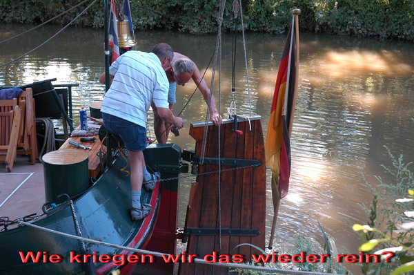 Bemühen, das Ruderblatt wieder ins Lager zu bekommen. Sehr erleichtert